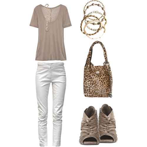 Number 5: Animal print bag. This outfit can be worn on a daily basis, but also to different events. I've paired the animal print bag with: a grey-ish top, a pair of white pants, some golden bracelets and a pair of grey heels. I like the simplicity of this outfit and I think the animal print bag gives it the pop that makes a simple outfit stand out.